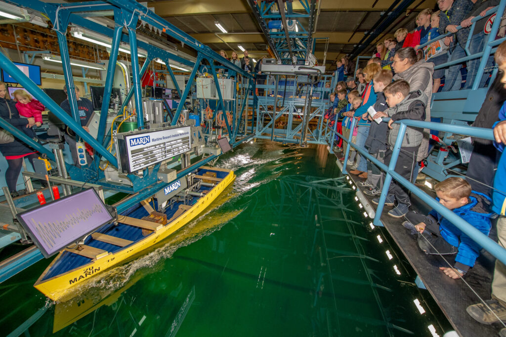 We delen graag onze hydrodynamische en nautische kennis. Dit doen we voor het grote publiek met onze open dagen, voor studenten met de jaarlijkse ontwerp- en zeilwedstrijd en voor Technasia-leerlingen die bij MARIN hun eigen windmolens testen.